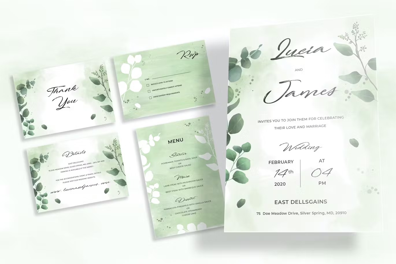 Botanical wedding invitations set