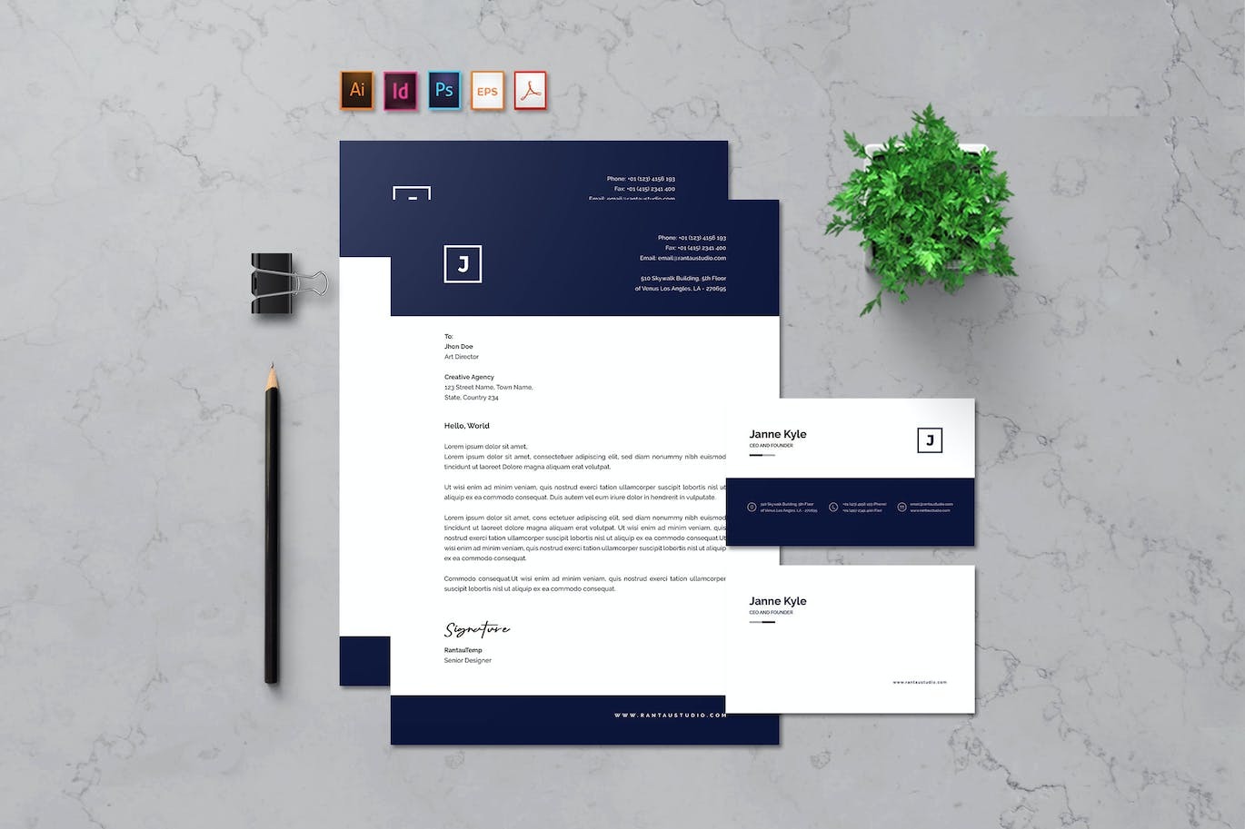 This creative letterhead and business card is a professional template ideal for personal identity. This template is a modern and clean design. Fully editable layer, very easy to use and organized.