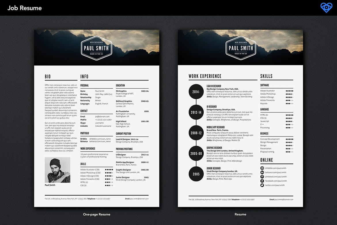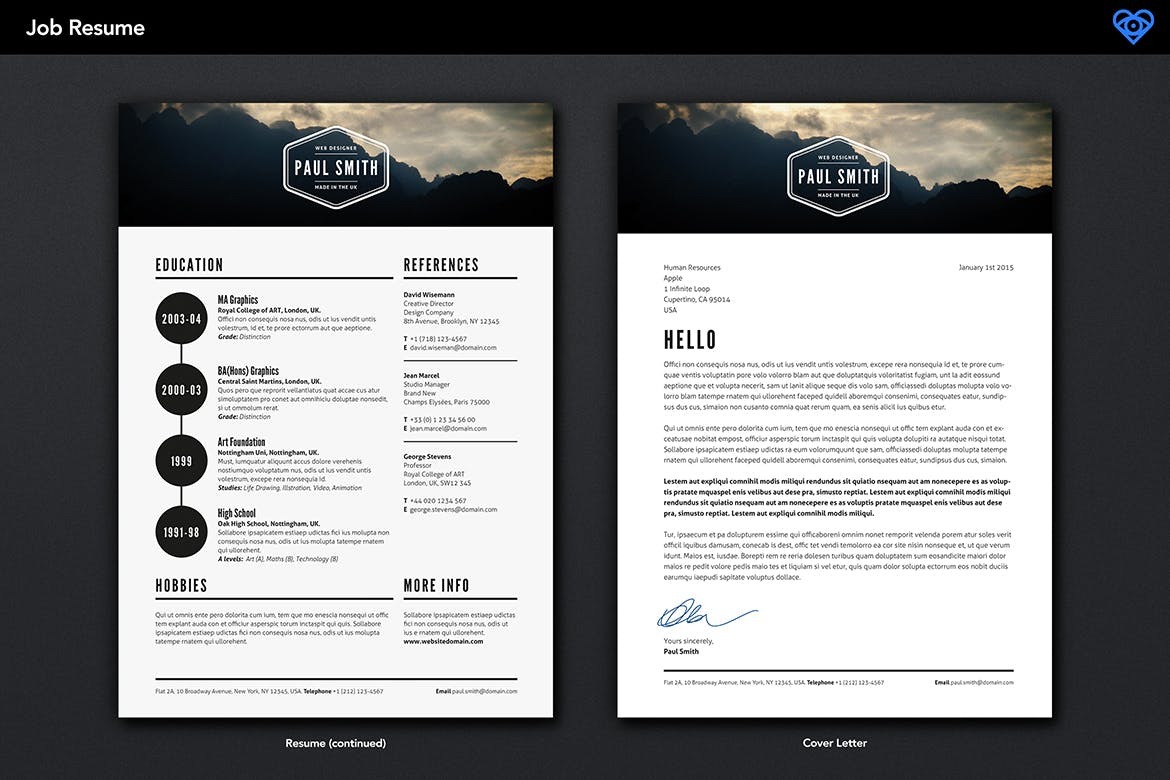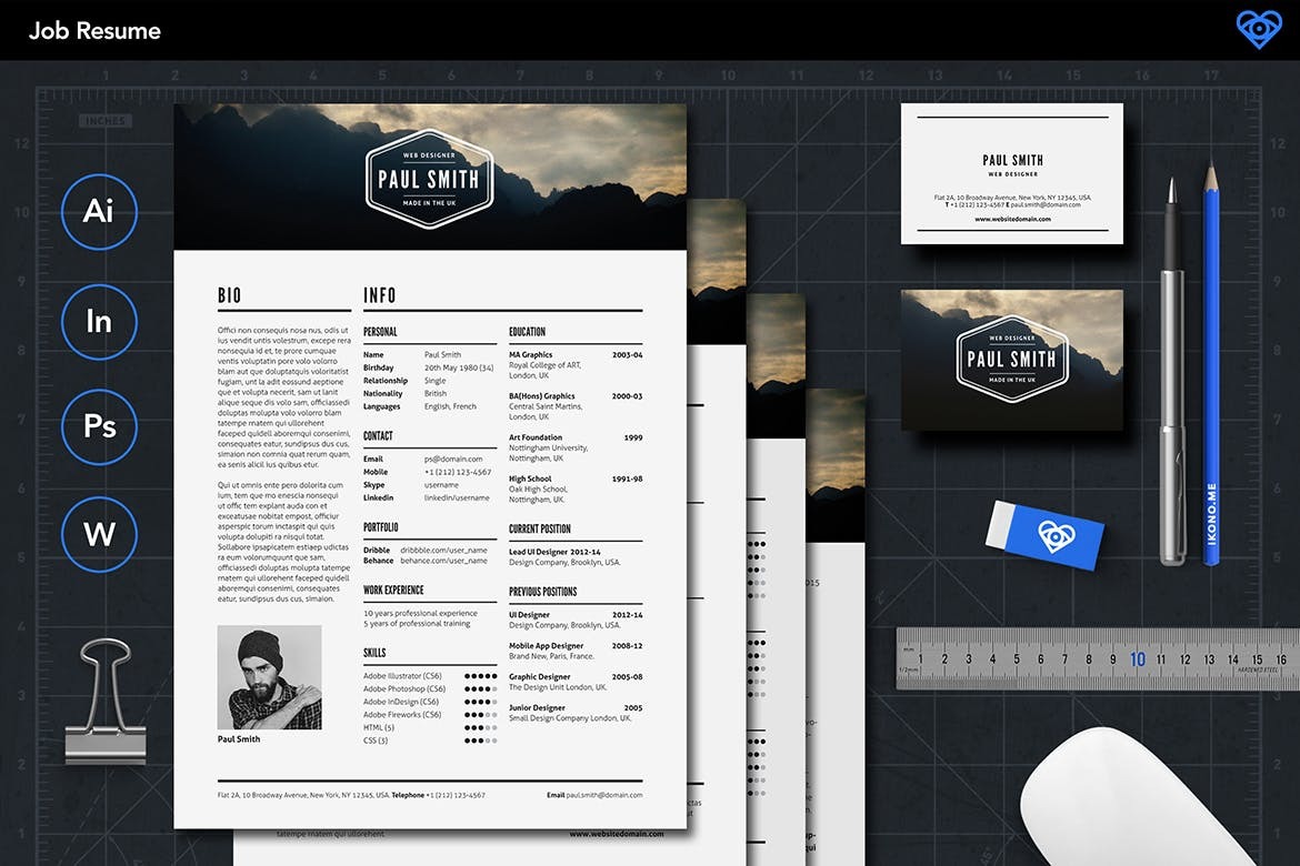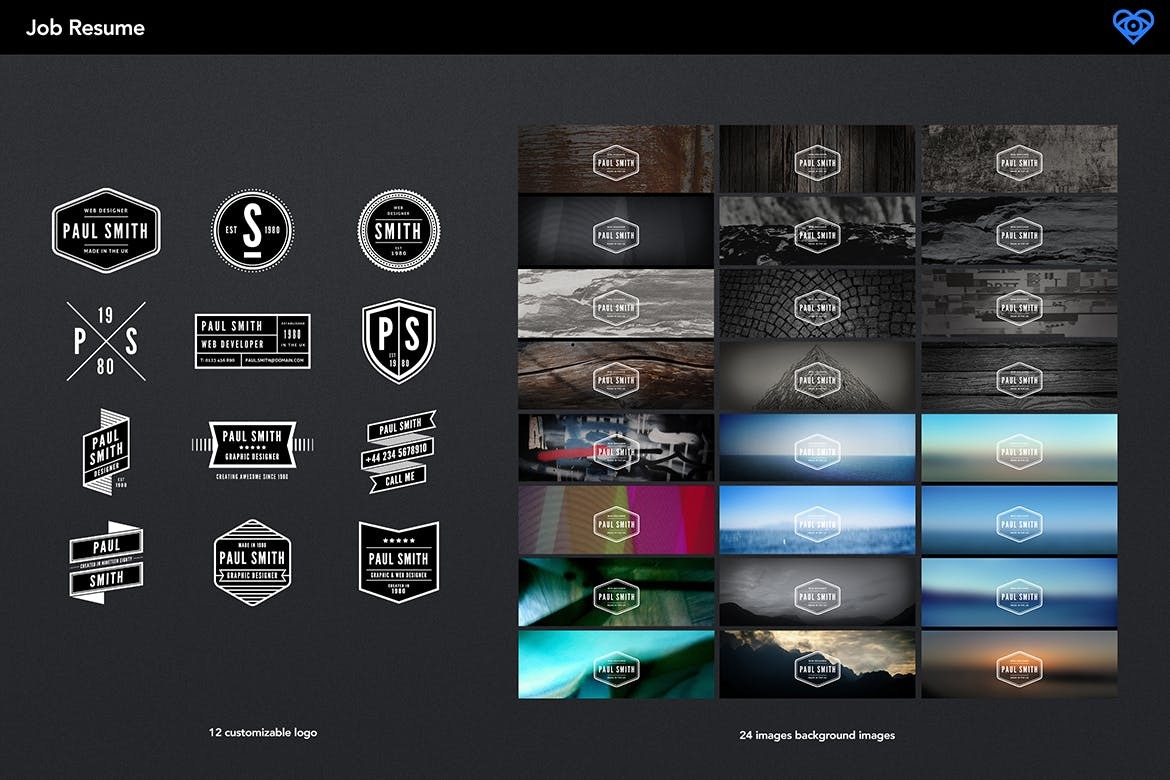 Key Features • A4 and US Letter sizes • Use Adobe Photoshop to Build Your Resume Image\ • Create your Resume Pages in Adobe Indesign, Adobe Illustrator, Adobe Photoshop or Microsoft Word\ • 4 Easy to Edit Page Templates \ • 12 X Easy to edit Logo Templates\ • 24 ready-to-use High Resolution (300 dpi) Background images\ • Visiting Business Templates\ • 40+ Social & Media Icons\ • Files are ready to print, High resolution 300 dpi CMYK