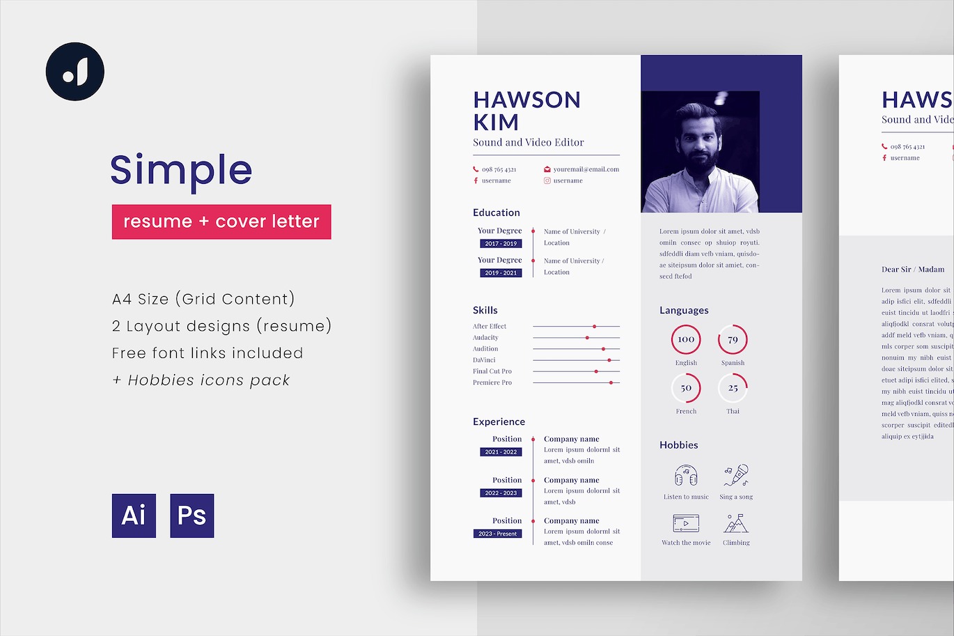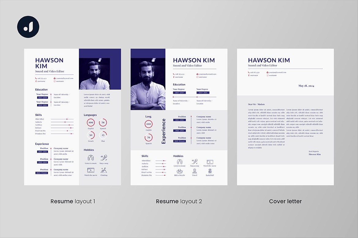 - 2 layout designs (resume) + cover letter