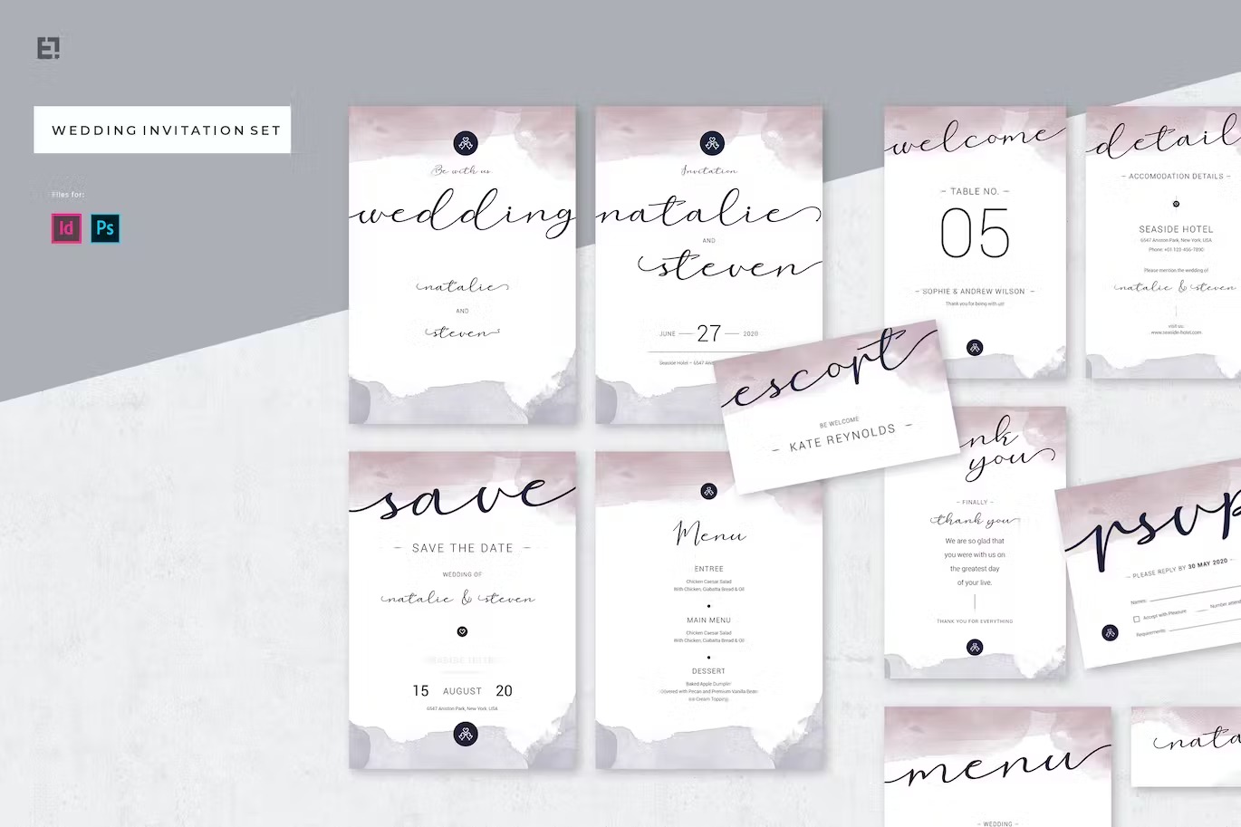 - Escort Card — (5 × 3 inches+0.125 inch bleed)